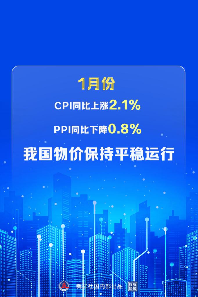 全国居民消费价格指数(CPI)同比上涨2.1%