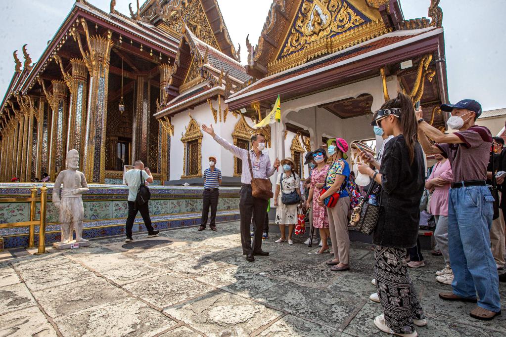 2月7日,中国旅游团游客在泰国曼谷大王宫景区游览。(新华社记者王腾摄)