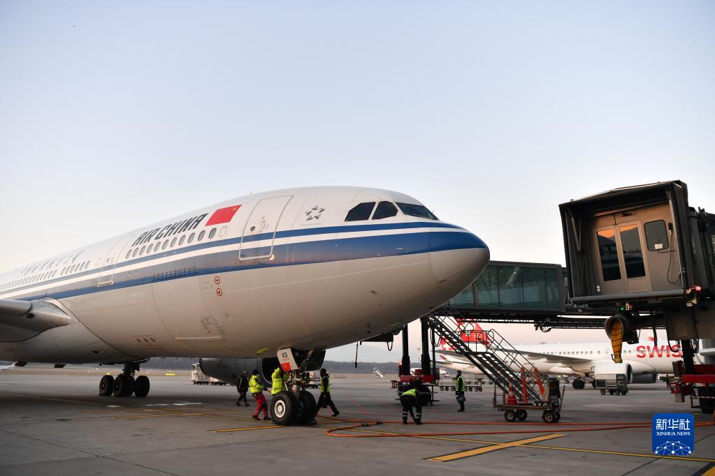 2月9日,中国国际航空公司北京至日内瓦航线复航首班航班落地瑞士日内瓦国际机场。新华社记者 连漪 摄