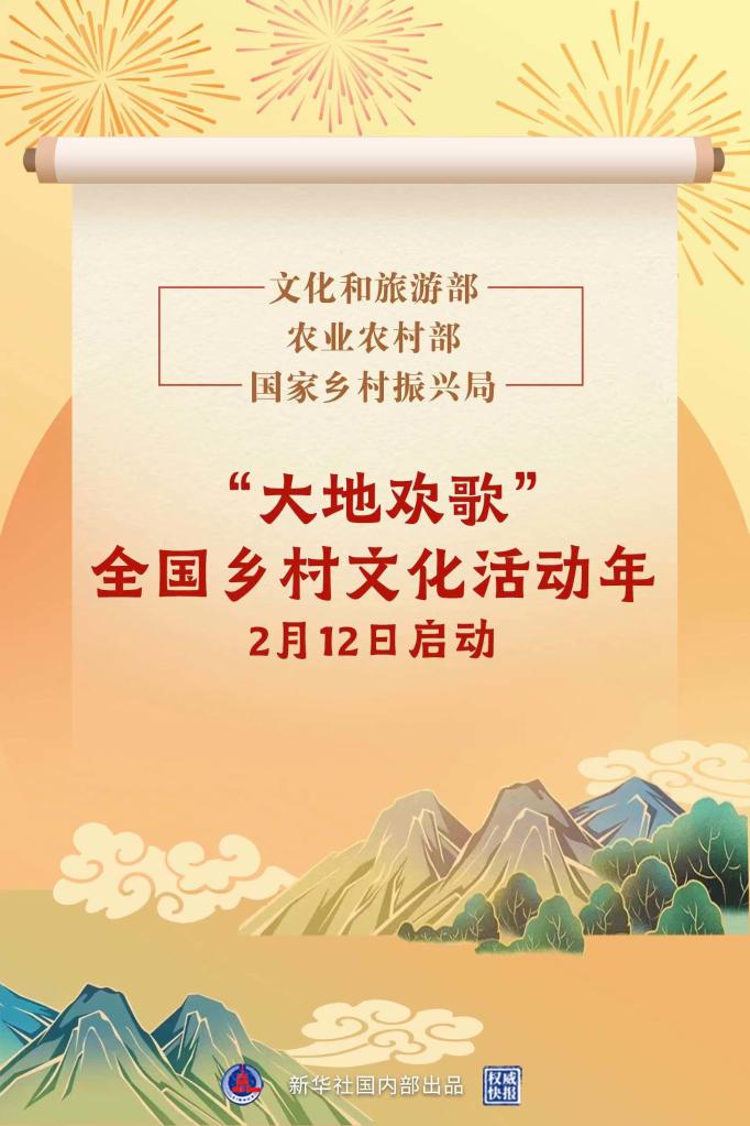 为深入实施乡村振兴战略,全面推进乡村文化振兴,文化和旅游部、农业农村部、国家乡村振兴局2月12日在湖北省武汉市启动“大地欢歌”全国乡村文化活动年。