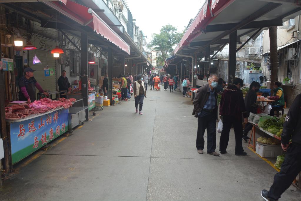 在厦门碧山路一处农产品交易点,商户们在“适当跨店经营”黄线范围内兜售商品。新华社记者颜之宏 摄