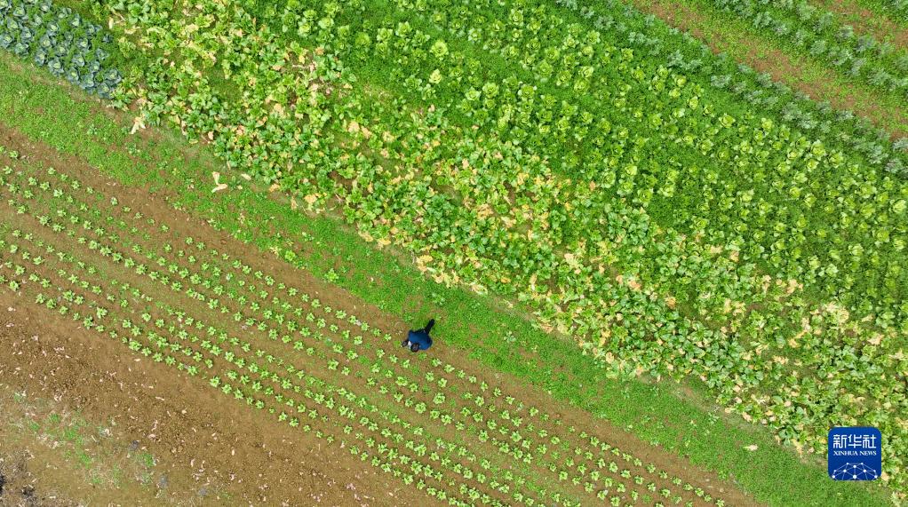 2月12日,村民在贵州省遵义市一农业园区蔬菜种植基地劳作。