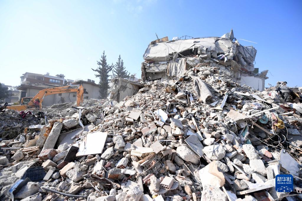 这是2月12日在土耳其哈塔伊省安塔基亚市拍摄的地震留下的废墟。