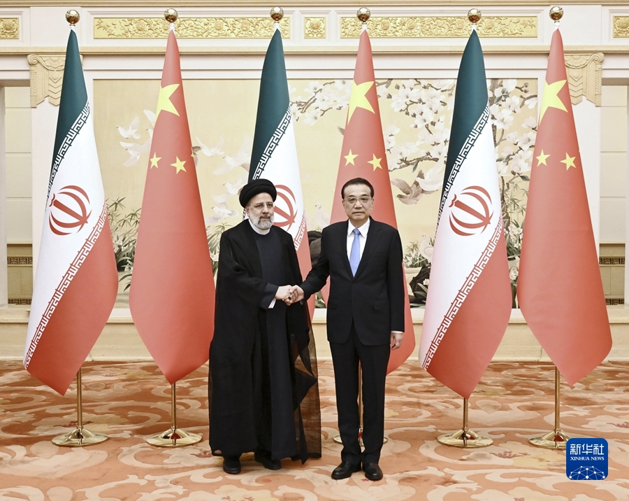 2月14日,国务院总理李克强在北京人民大会堂会见来华进行国事访问的伊朗总统莱希。新华社记者 燕雁 摄