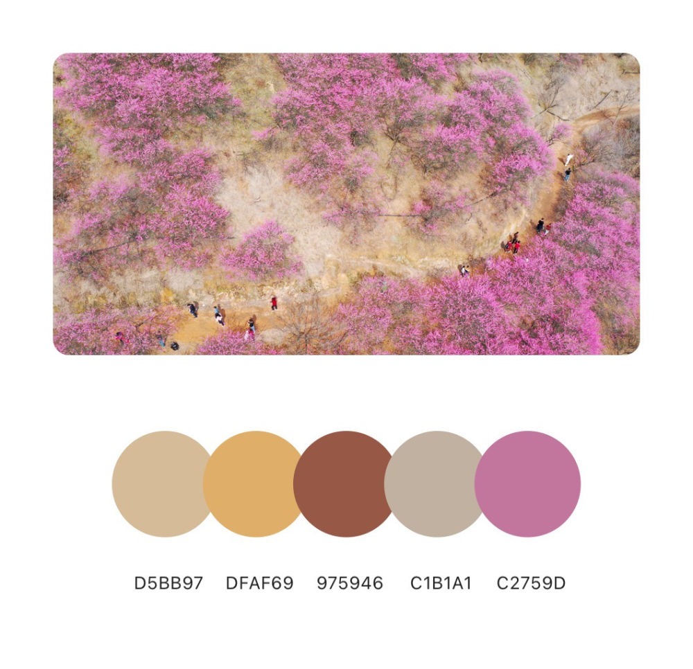 2月11日,游客在江苏省扬州市蜀冈西峰生态公园赏花游玩(无人机照片)。新华社发(孟德龙 摄)