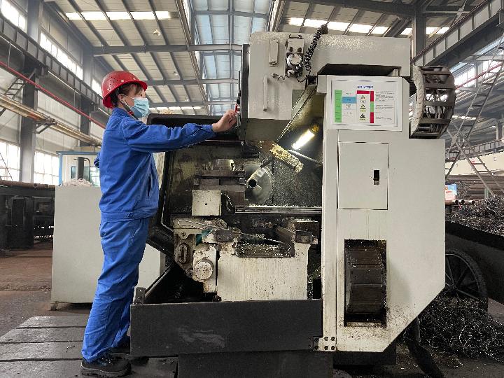 图为工人在陕西嘉盛石油机械有限公司的生产车间内操作设备。新华社记者刘彤 摄
