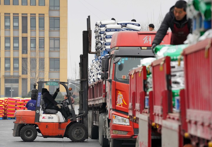 2月8日,在安阳万庄公铁物流园,工作人员在装运化肥。时值春耕备耕时节,河南统筹做好化肥生产、运输、销售、农技指导等工作,保障农资市场供应稳定,为春耕生产保驾护航。 新华社记者 李嘉南 摄