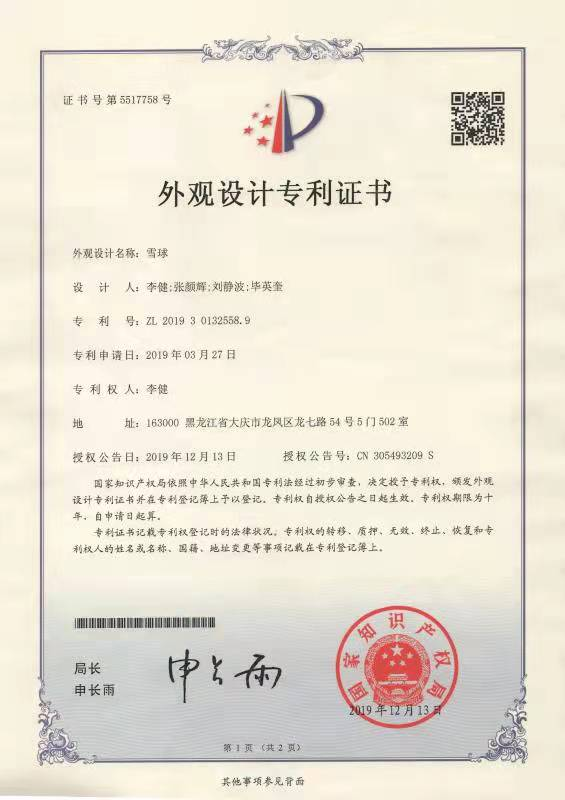 ‘雪球’的图案被设计为六个雪花