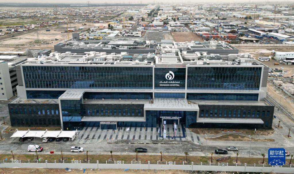 这是2月15日在科威特杰赫拉省拍摄的科威特医保医院项目杰赫拉省分院外景(无人机照片)。新华社发(阿萨德摄)