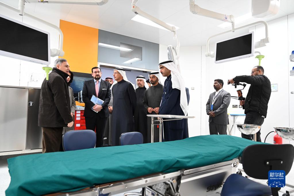 2月15日,在科威特杰赫拉省,来宾在科威特医保医院项目杰赫拉省分院内参观。新华社发(阿萨德摄)