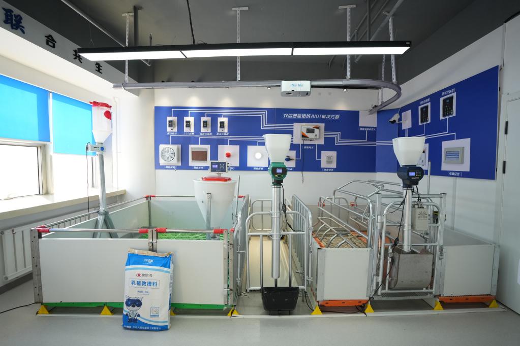 图为辽宁农信数据科技有限公司内模拟的智能猪场场景。新华社记者潘昱龙 摄