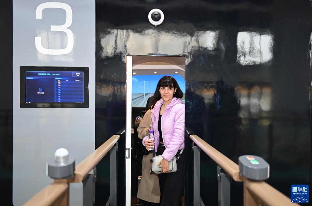 2月17日,在西铁教育培训基地,西安交通大学的伊朗留学生参观体验机务全功能高级模驾区。