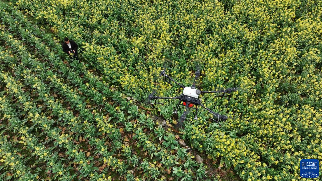 早春时节,贵州省六盘水市六枝特区木岗镇16000余亩油菜花竞相绽放。当地村民积极整地、育苗,并利用植保无人机进行春管,一派繁忙景象。