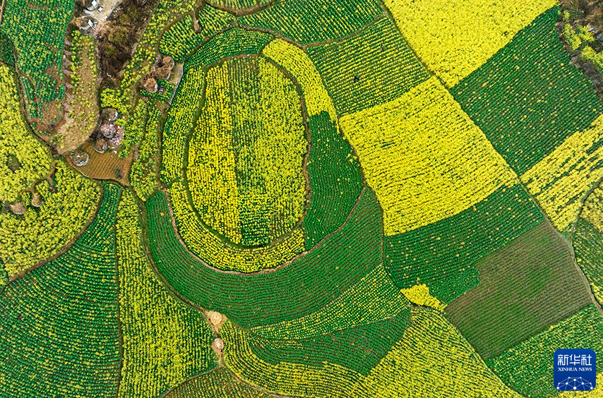 2月17日拍摄的贵州省六盘水市六枝特区木岗镇万亩油菜基地(无人机照片)。