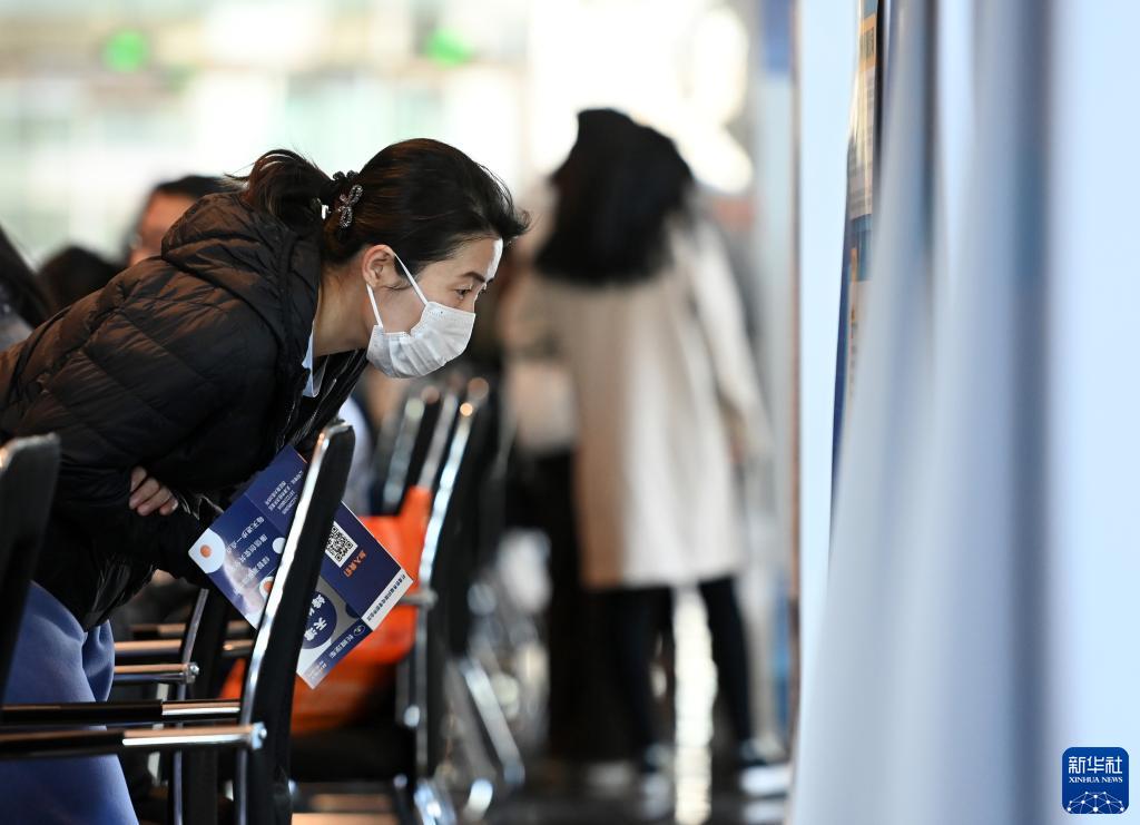 2月19日,在天津经济技术开发区春季促就业暖心行动公益现场招聘会,求职者查看招聘信息。