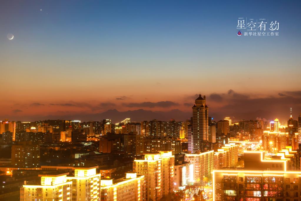 这是北京市海淀区中关村第二小学星云社社员张辰毅2022年2月27日傍晚在北京市海淀区上空拍摄的金星伴月。(本人供图)