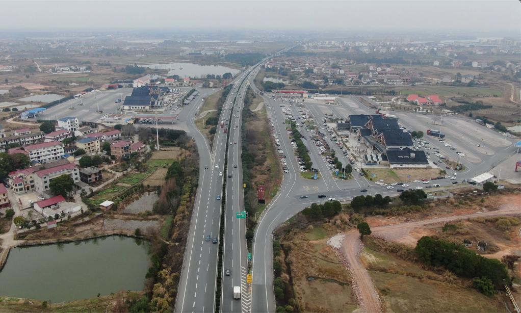 图为沪昆高速公路江西段及其沿线的龙虎山服务区(无人机照片)。新华社记者郭杰文 摄