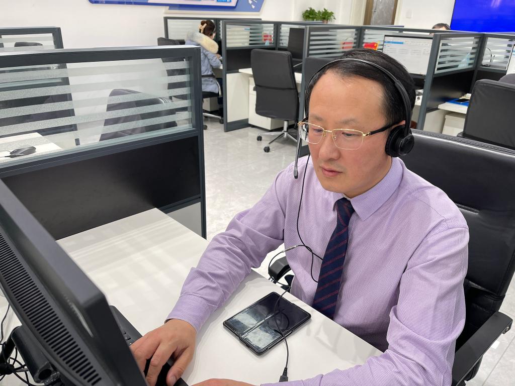 律师王东翔在黑龙江省公共法律服务中心接听群众来电。新华社记者 闫睿 摄