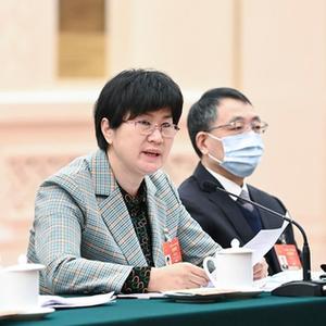 2021年全国两会上,全国人大代表马恒燕(中)建言献策。新华社记者李响摄