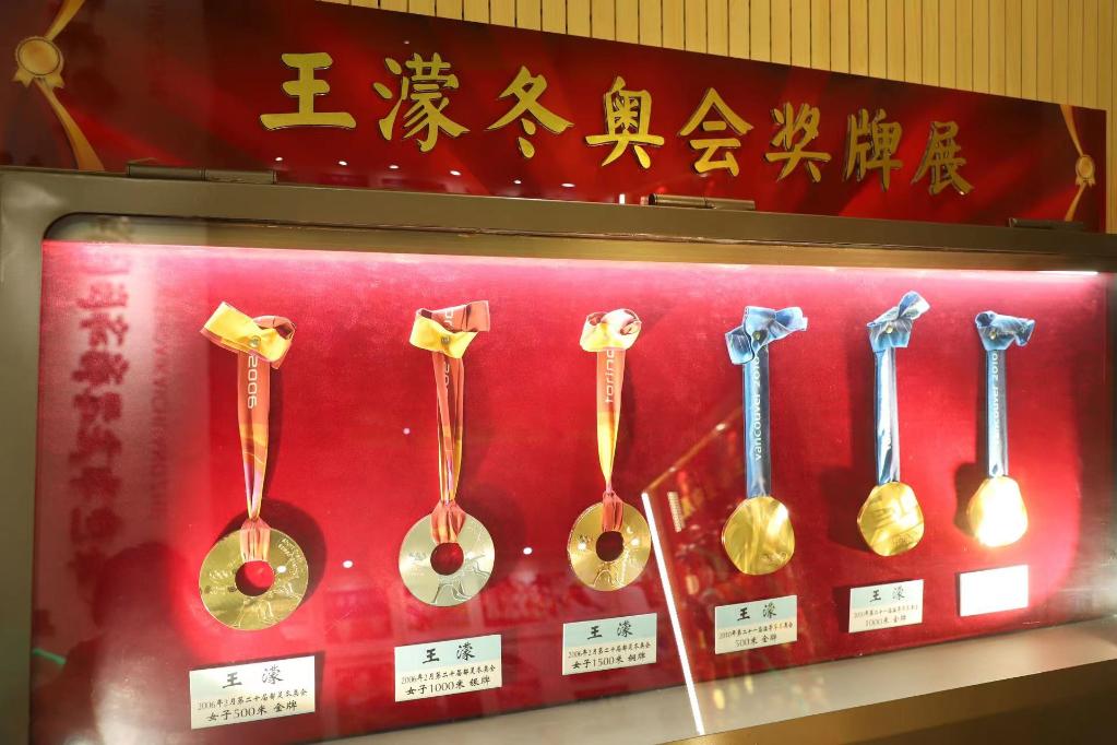 七台河市短道速滑冠军馆内的王濛冬奥会奖牌展。新华社记者 戴锦镕 摄