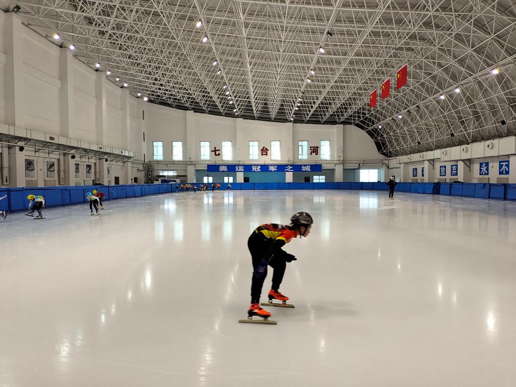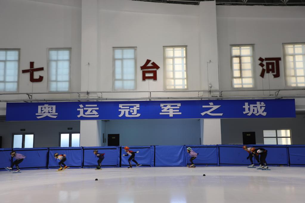 2月7日,在七台河体育中心内,运动员们正在训练。新华社记者 戴锦镕 摄