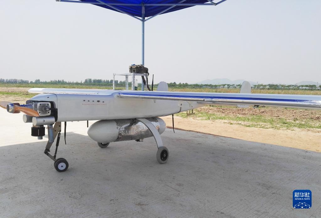 这是在安徽淮北一处试验场准备试飞的无人机(2018年5月13日摄)。由中国航天科工二院23所自主研发的无人机机载下投探空系统顺利完成试验,填补了国内利用大型无人设备开展气象探测的空白。新华社发(中国航天科工二院供图)