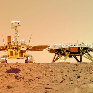 这是“着巡合影”图。2021年6月11日,国家航天局在北京举行天问一号探测器着陆火星首批科学影像图揭幕仪式,公布了由祝融号火星车拍摄的着陆点全景、火星地形地貌、“中国印迹”和“着巡合影”等影像图。首批科学影像图的发布,标志着我国首次火星探测任务取得圆满成功。新华社发(国家航天局供图)