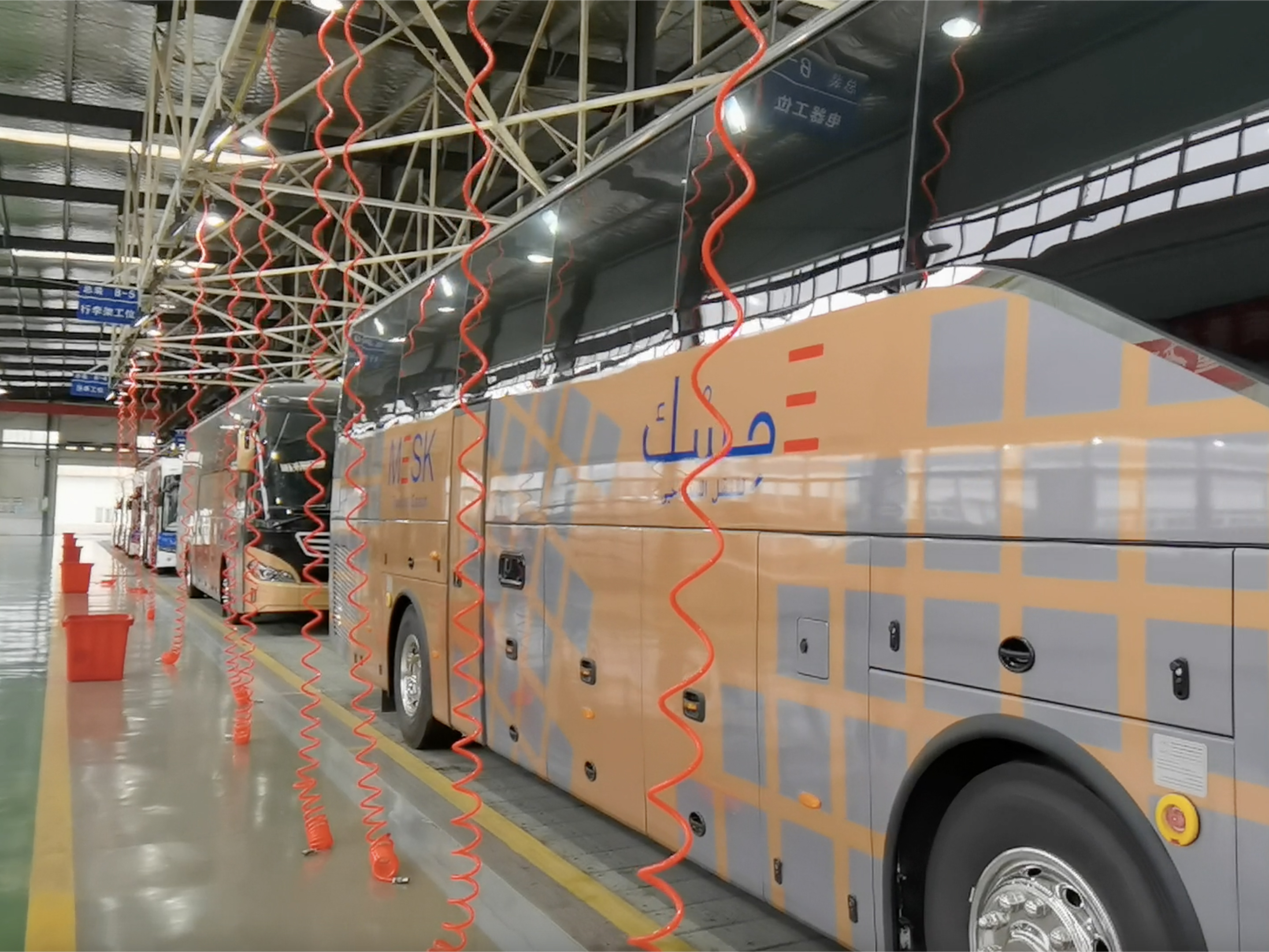 李晗告诉记者,工作人员将客车前围设计为可以从外围直接打开,方便后期维修大灯和雨刮设备,降低了运维成本。同时在配置上针对中东地区炎热、干燥的自然环境和集中用车的需求进行优化,受到中东市场欢迎。
