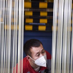 2月22日,在中复神鹰碳纤维西宁有限公司,工作人员在检查碳纤维生产线运行情况。