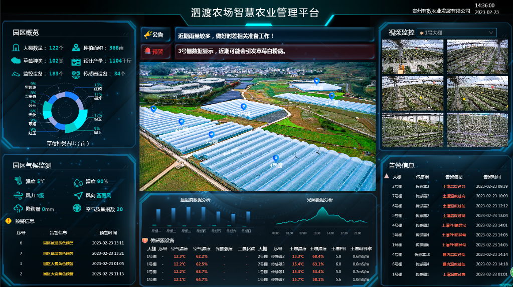 走进贵州省遵义市汇川区泗渡农场的办公室,只见智慧农业管理平台正在滚动播报以上警示。“这些预警信息是大数据系统分析大棚里的湿度和温度得出的结论。”泗渡农场负责人徐纬说,每当系统发出预警,他们会马上采取防治措施。