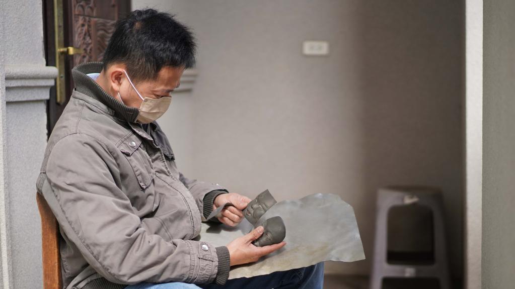 锡艺匠人陈志升在构思设计锡器作品的结构(2月4日摄)。新华社记者 黄扬 摄