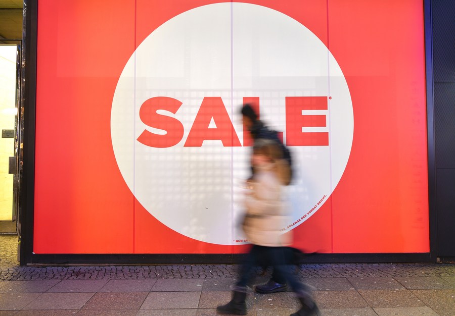 2022年12月30日,人们经过德国首都柏林的一家打折店铺。(新华社记者任鹏飞 摄)