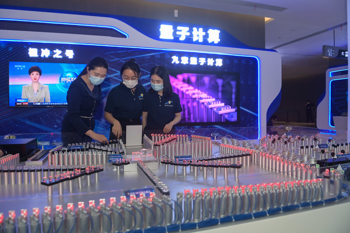 参会人员在合肥举行的2021量子产业大会上参观“九章”量子计算原型机模型(2021年9月18日摄)。新华社记者 韩旭 摄