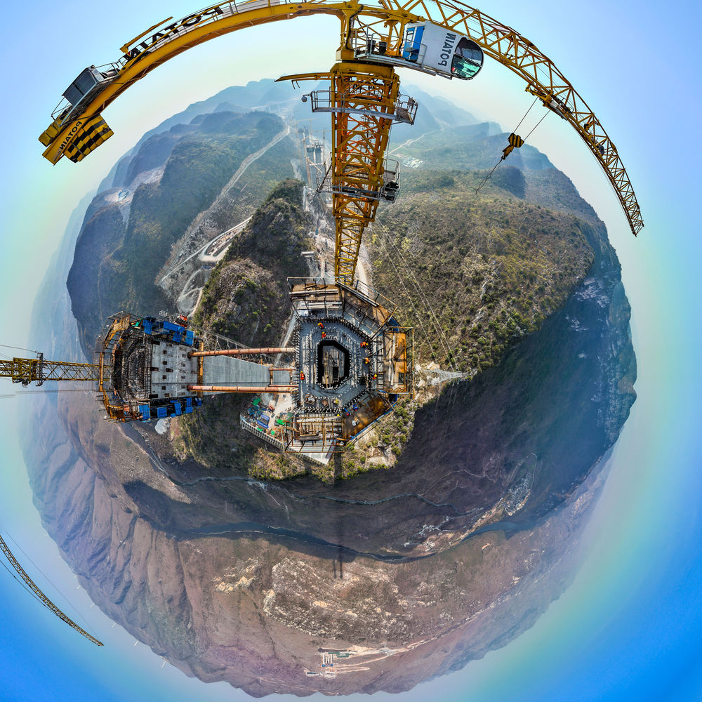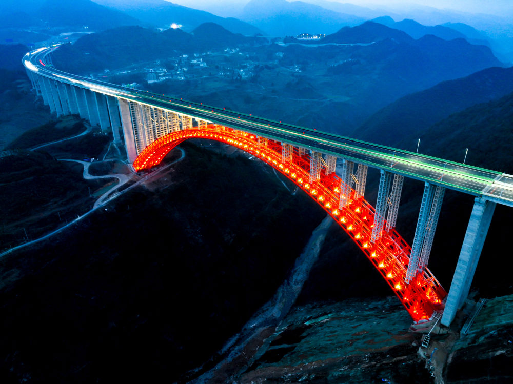 正在建设的花江峡谷大桥设计全长2890米,主桥跨径1420米,桥面距水面垂直距离625米,预计2025年建成后将成为主桥跨径和高度世界第一的山区桥梁。在它之下的花江大峡谷峰林怒拔、崇山峻岭依岸对列、河谷深切,相对高差近千米,被称作“地球大裂缝”。