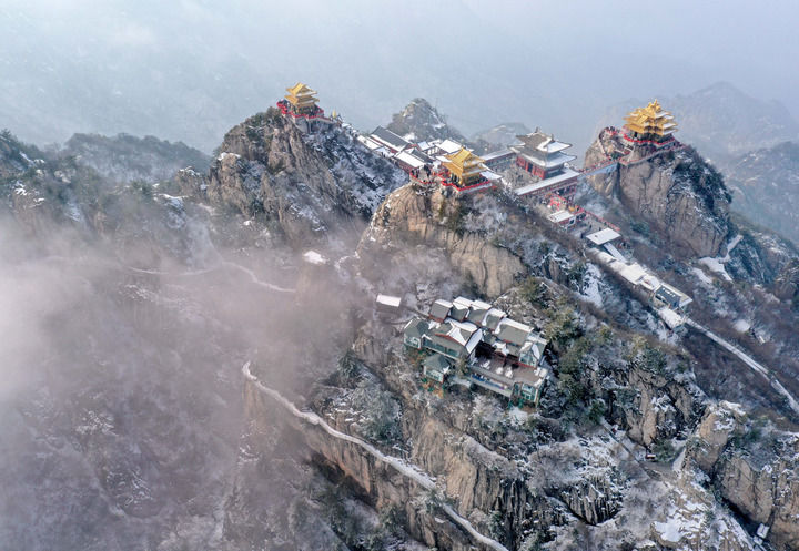 这是2月23日拍摄的洛阳市栾川县老君山风景区(无人机照片)。新华社记者 李安 摄