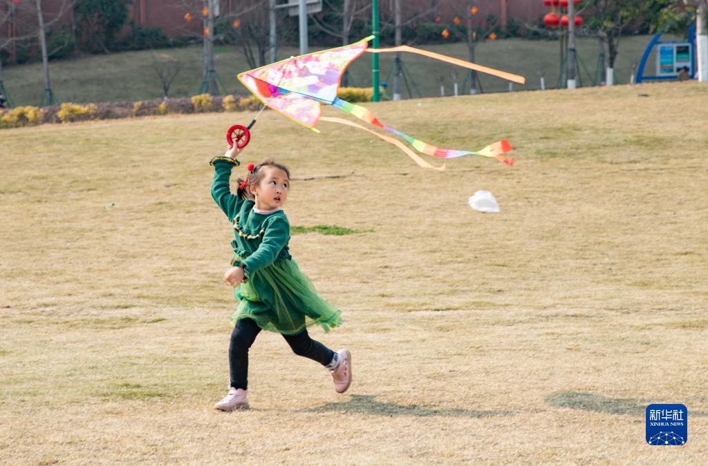 2月26日,在四川省宜宾市翠屏区竹文化公园内,一名小女孩在放风筝。