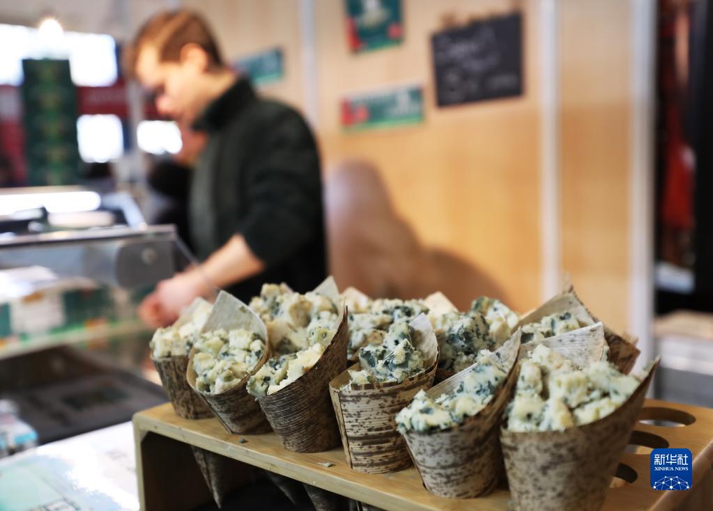 2月27日,在法国巴黎举行的第59届法国国际农业博览会上,工作人员售卖奶酪。