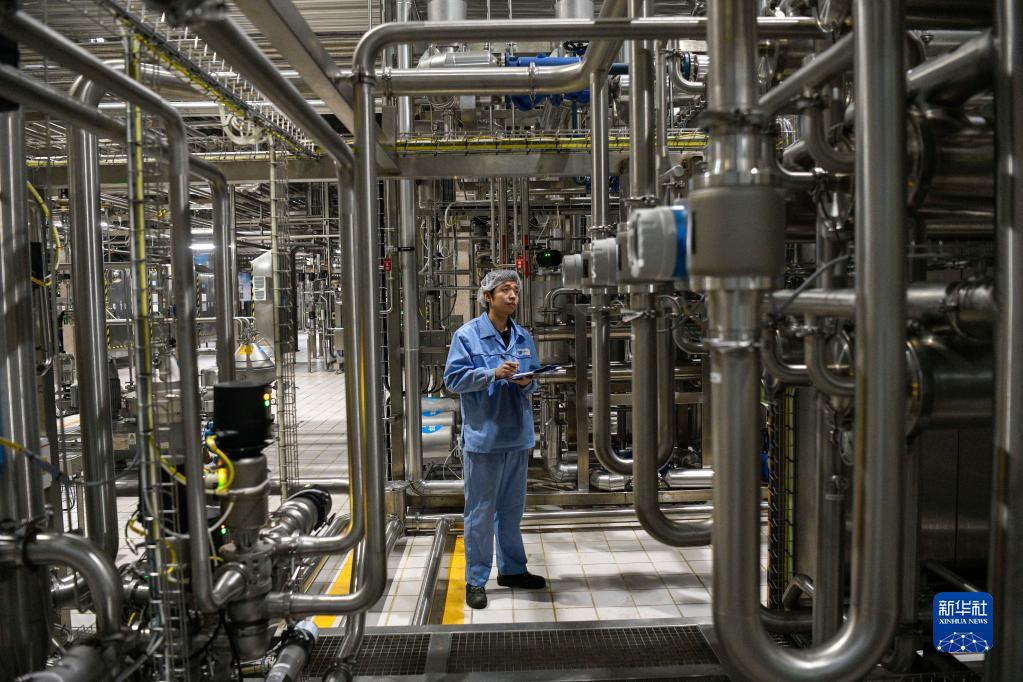 2月28日,在丰宁县一家乳制品生产企业,工人在检查设备运转情况。