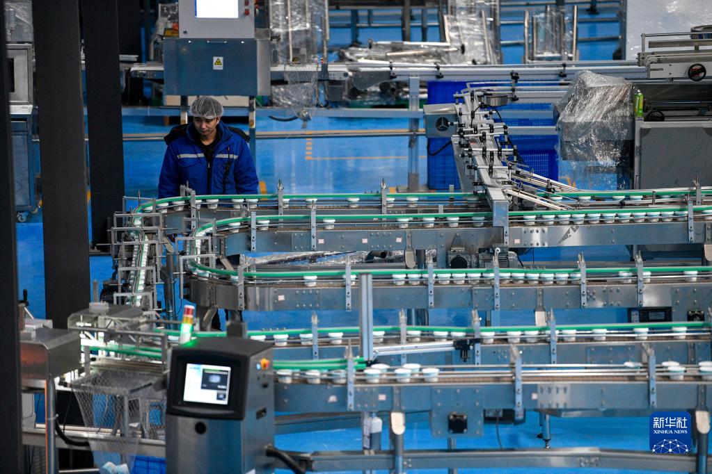 2月28日,在丰宁县一家乳制品生产企业包装车间,工人在生产线上忙碌。
