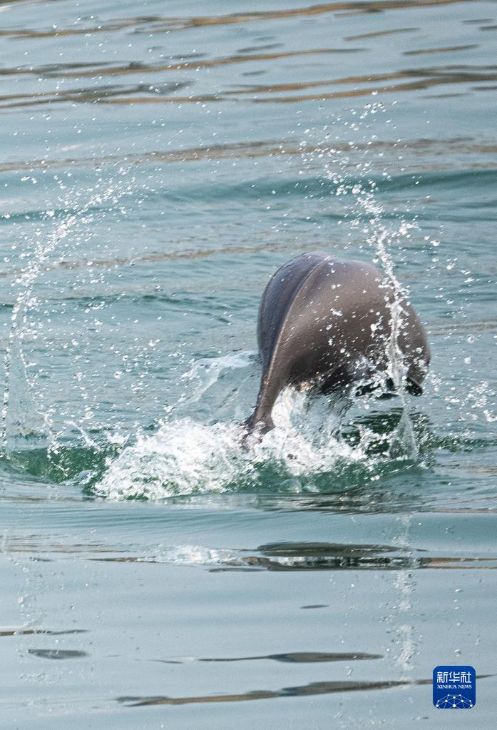 2月27日,在湖北省宜昌市江边,长江江豚在水中嬉戏。