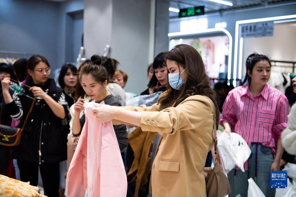 2月28日,批发商在湖南省株洲市芦淞区华丽服装批发大市场选购服饰。