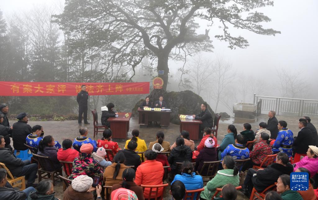2月28日,法庭工作人员在鹤峰县中营镇三家台村开展模拟庭审。