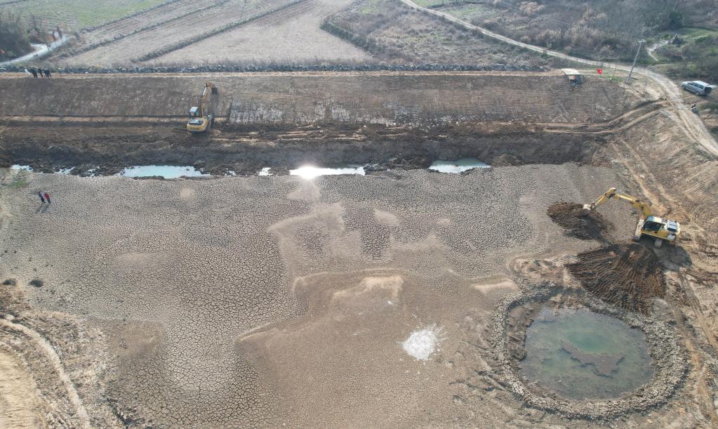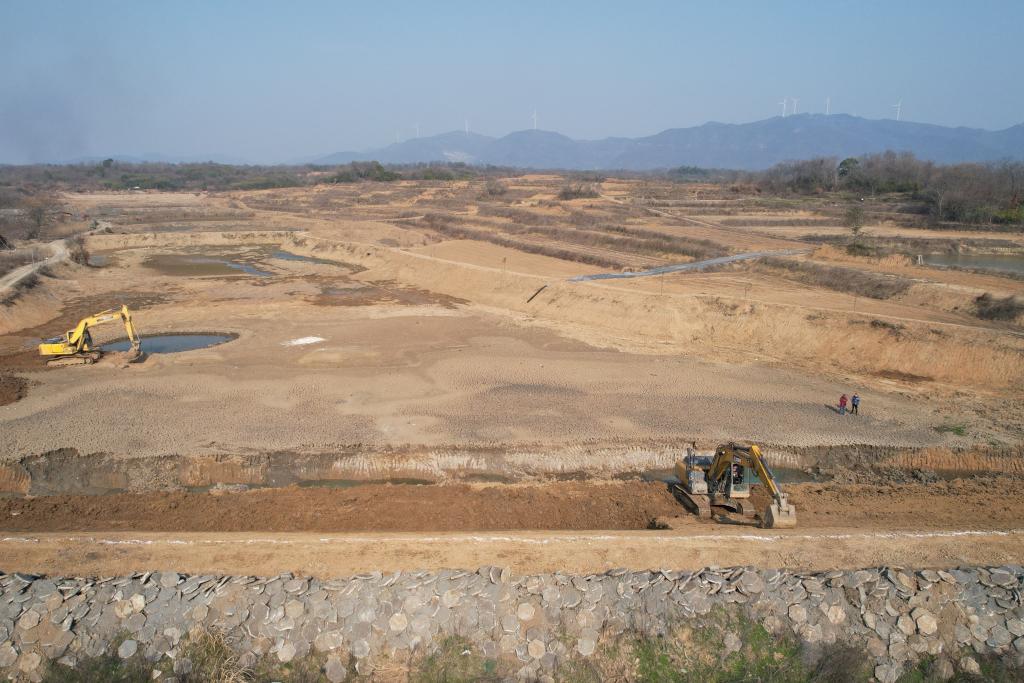 2023年2月21日所摄加固整治中的彭泽县王家塘。新华社记者 刘诗平 摄
