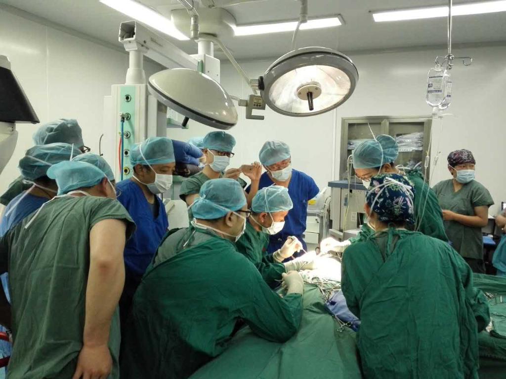 北京大学人民医院耳鼻喉科援藏团队在西藏为贫困聋儿进行人工耳蜗植入手术。(图片来源:北京大学人民医院)