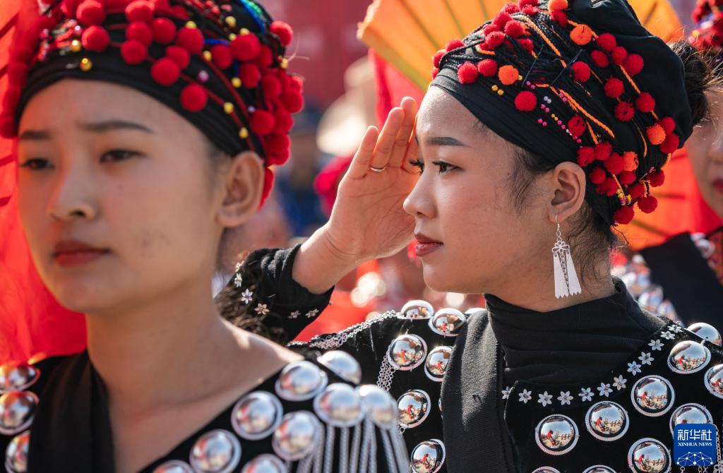 当日,云南省德宏傣族景颇族自治州瑞丽市2023年目瑙纵歌节在位于中缅边境的勐秀乡户瓦山寨开幕。