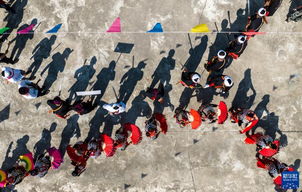 从空中俯瞰目瑙纵歌节现场(3月2日摄,无人机照片)。