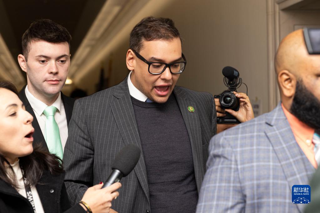 这是1月25日在美国华盛顿国会拍摄的美国纽约州联邦众议员乔治·桑托斯(中)。新华社发(亚伦摄)