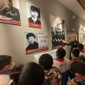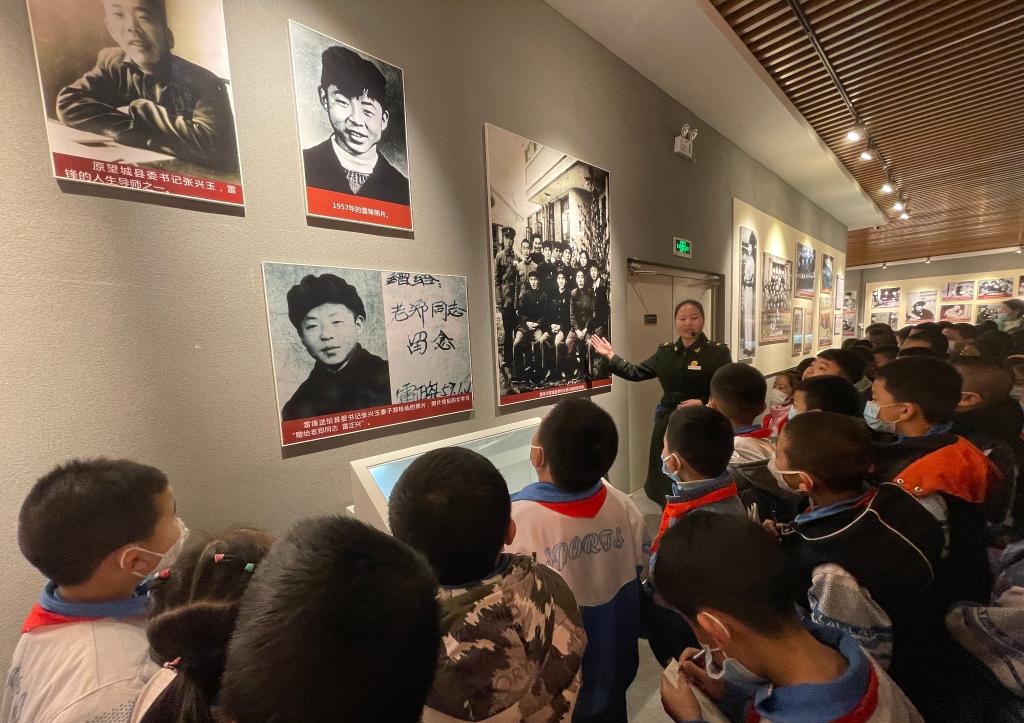 银川市雷锋纪念馆里,讲解员为小学生讲述雷锋的故事。新华社记者 苏醒 摄