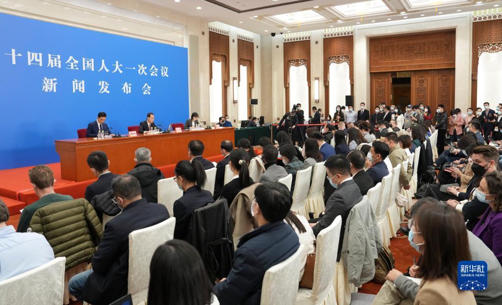3月4日,十四届全国人大一次会议在北京人民大会堂举行新闻发布会。大会发言人王超就会议议程和人大有关工作回答中外记者提问。新华社记者 邢广利 摄
