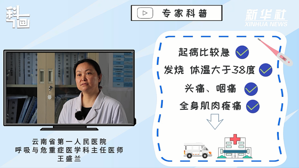 近期以来,中国疾病预防控制中心数据显示,流感病毒阳性率增加,流感疫情活动强度呈现上升趋势,以甲型流感为主。感染流感后出现哪些症状需要就医?如何做好预防?记者采访了云南省第一人民医院呼吸与危重症医学科主任医师王盛兰。